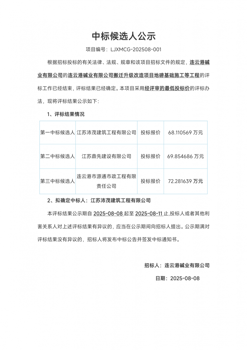 搬遷升級改造項(xiàng)目地磅基礎(chǔ)施工等工程中標(biāo)候選人公示