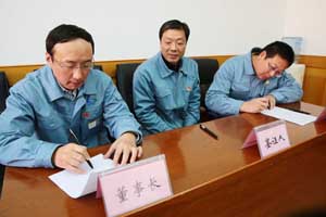 會(huì)上還宣讀了《關(guān)于表彰2017年度HSE先進(jìn)單位和個(gè)人的決定》,公司董事長(zhǎng)代表公司與重堿車間、煅燒車間等5家部門代表簽訂了2018年HSE責(zé)任書。
