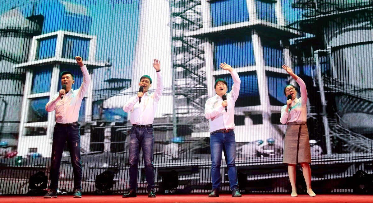 為紀念五四運動100周年,迎接第70個五四青年節(jié)的到來,4月29日晚,公司“青春心向黨 建功新時代”職工文藝匯演在生活區(qū)俱樂部舉辦。公司領(lǐng)導與職工和家屬一同觀看了此次演出。