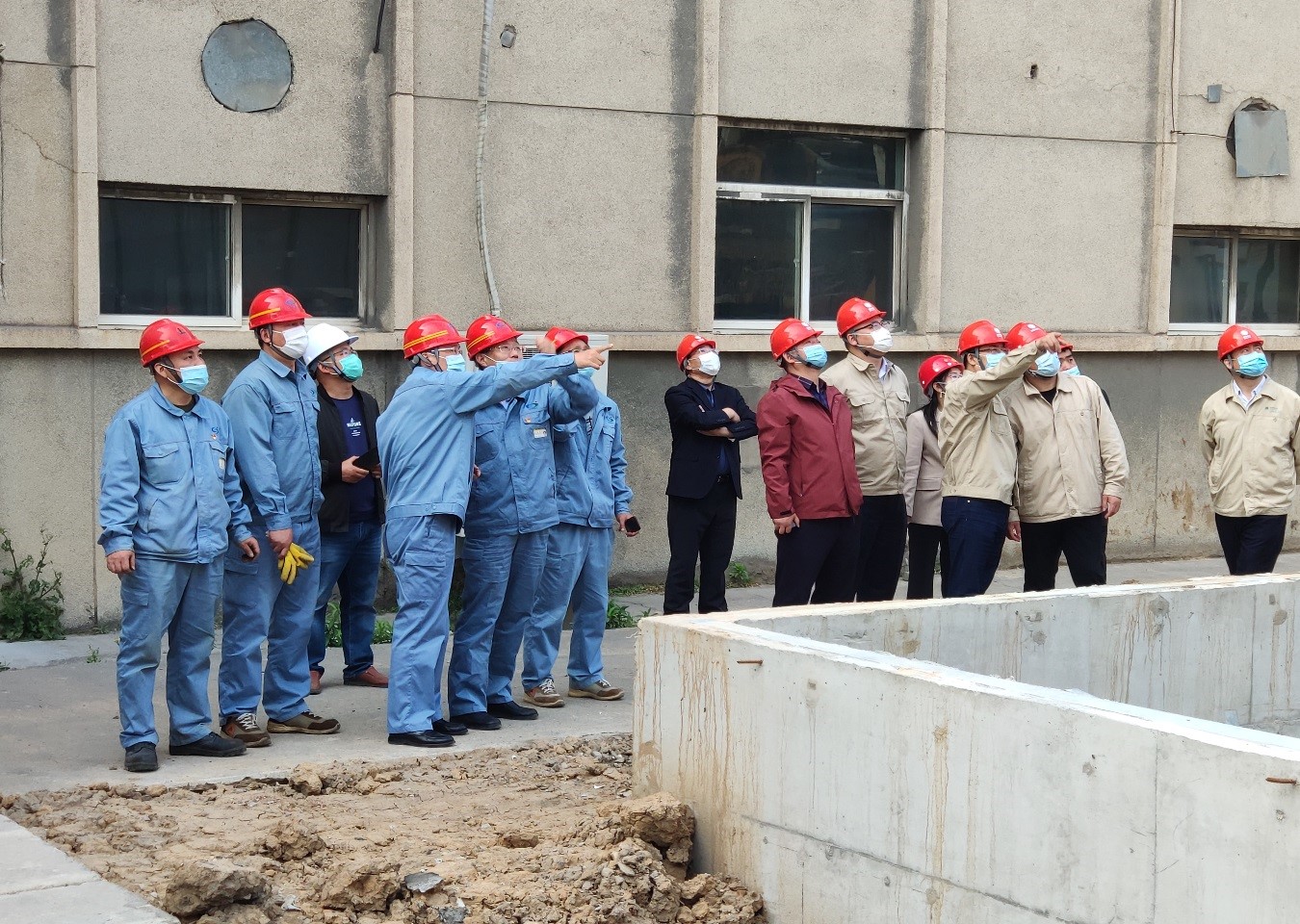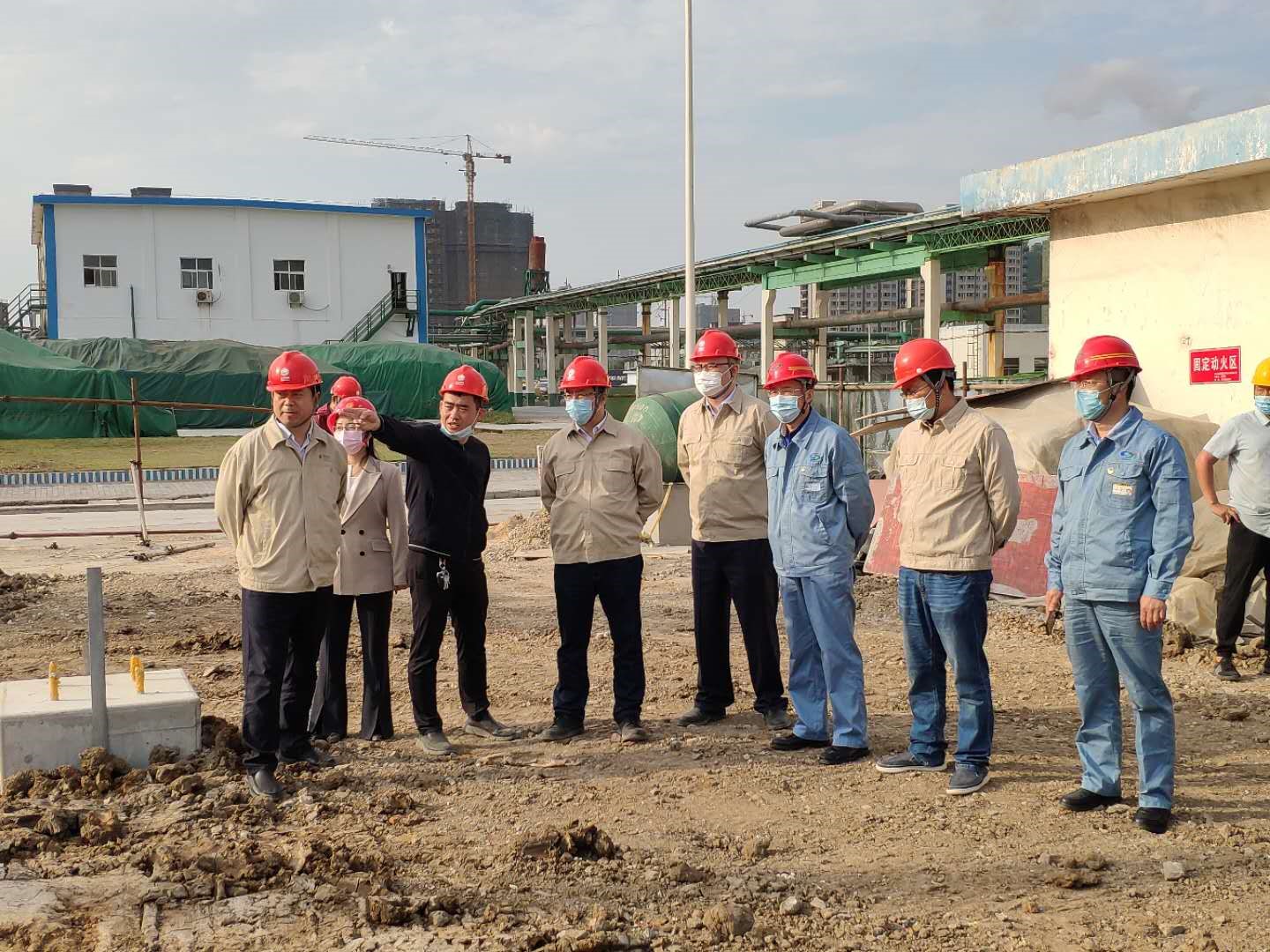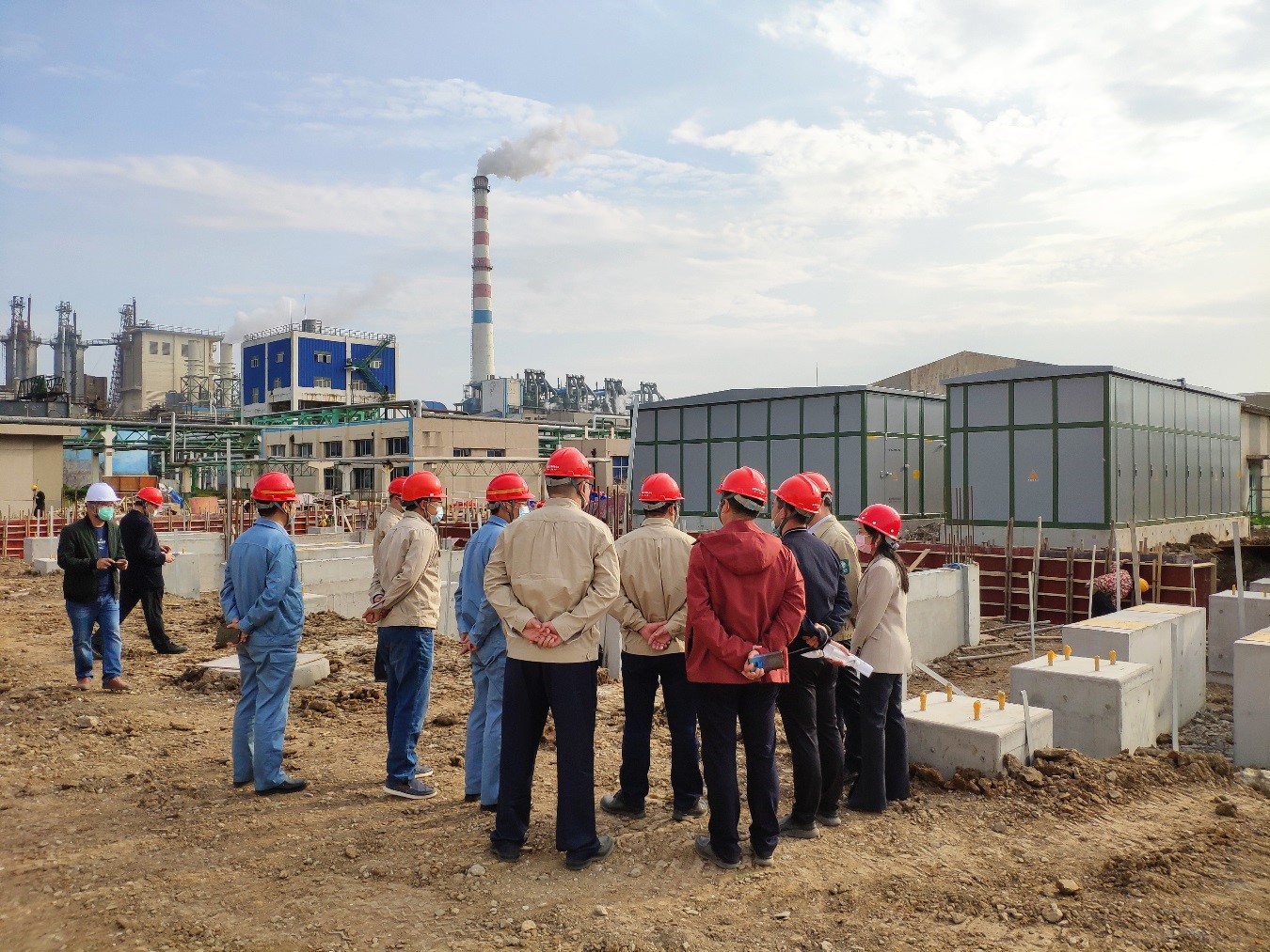 程真何一行人員在堿業(yè)公司董事長張衛(wèi)民的帶領(lǐng)下實地考察了外電網(wǎng)系統(tǒng)供電增容改造施工狀況,并就施工質(zhì)量和進(jìn)度提出了意見和建議。