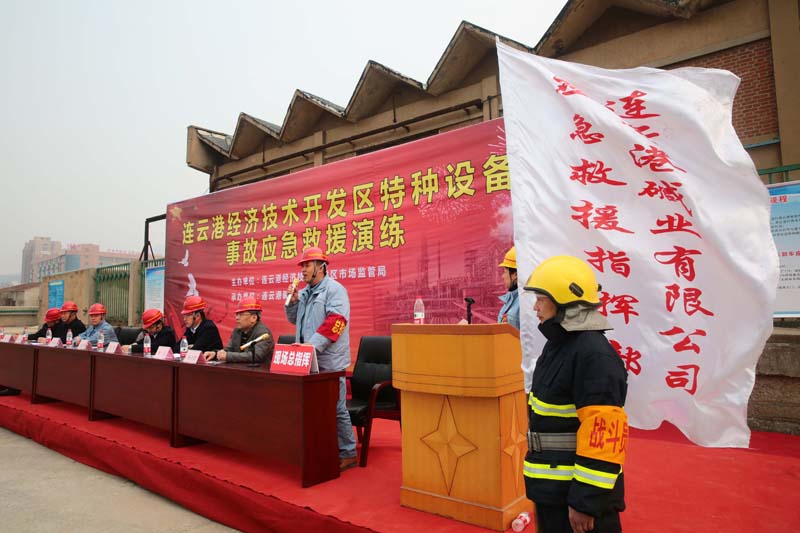 為預(yù)防和減少生產(chǎn)安全事故的發(fā)生,檢驗連云港開發(fā)區(qū)市場監(jiān)管局應(yīng)急預(yù)案與企業(yè)應(yīng)急預(yù)案的銜接性,提高應(yīng)對突發(fā)事故的組織領(lǐng)導(dǎo)、協(xié)調(diào)配合、快速反應(yīng)、應(yīng)急處置能力。同時檢驗公司應(yīng)急預(yù)案編制的實用性、可操作性,3月22日,連云港經(jīng)濟(jì)技術(shù)開發(fā)區(qū)市場監(jiān)管局聯(lián)合堿業(yè)公司組織開展特種設(shè)備事故應(yīng)急演練。市質(zhì)監(jiān)局副局長宋志飚、開發(fā)區(qū)市場監(jiān)管局局長殷元、公司總經(jīng)理、黨委副書記李清菊等現(xiàn)場觀摩演練。