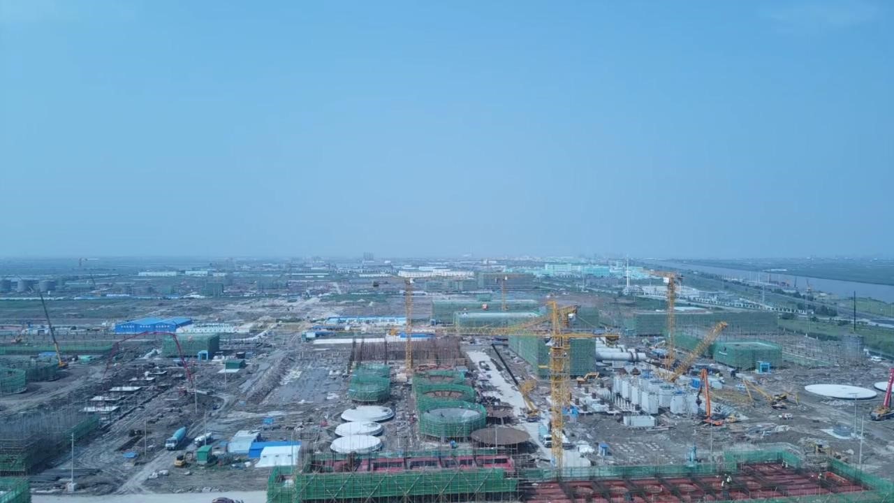 ⑴聯(lián)堿一標段101b聯(lián)堿辦公樓屋面女兒墻拆模養(yǎng)護;152中心控制室屋面鋼結構進場,砌體施工;151化驗中心四層支撐架搭設;340機電儀維修廠房鋼結構工廠預制,砌體施工;510重堿車間V51301A設備中心筒與溢流箱合攏,氨II澄清桶安裝,母液I澄清桶安裝.管廊基礎防腐回填;532重灰段深基坑回填、水池養(yǎng)護;280b換熱站屋面鋼結構工廠預制。