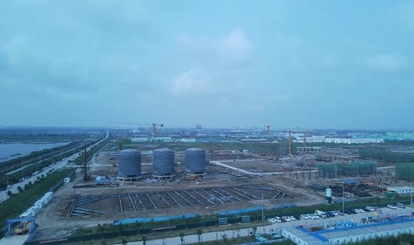 ⑶聯(lián)堿三標(biāo)段420脫鹽水站柱子焊預(yù)埋鋼板安全通道搭設(shè);402凈水站底板混凝土換撐澆筑完成,加藥間主體結(jié)構(gòu)澆筑完成;430污水處理污泥廠房污泥脫水廠房二層頂板模板,鋼筋綁扎,綜合調(diào)節(jié)池生產(chǎn)污水事故池、綜合調(diào)節(jié)池、高效沉淀池AB測(cè)量定位糾偏;440污水回用污水回用超濾反洗液收集池回填,設(shè)備基礎(chǔ)交接,儲(chǔ)藥間承臺(tái)地梁回填完,設(shè)備基礎(chǔ)施工;810火炬模板拆除;561事故水池蓄水實(shí)驗(yàn)、清理;118停車辦公區(qū)砌筑;540小蘇打裝置一層梁底板模板安裝;535成品庫(kù)房1~22軸承臺(tái)及地梁鋼筋模板,22軸~33軸筏板澆筑,45軸~56軸筏板鋼筋綁扎。