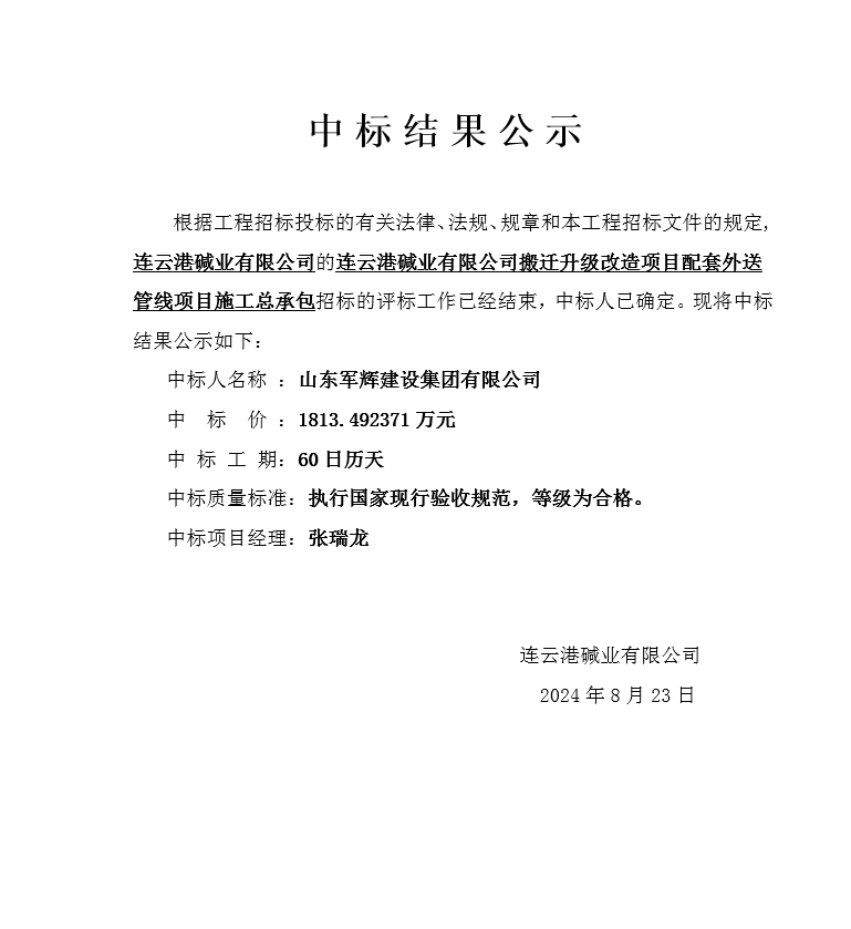 搬遷升級改造項目配套外送管線項目中標結(jié)果公示